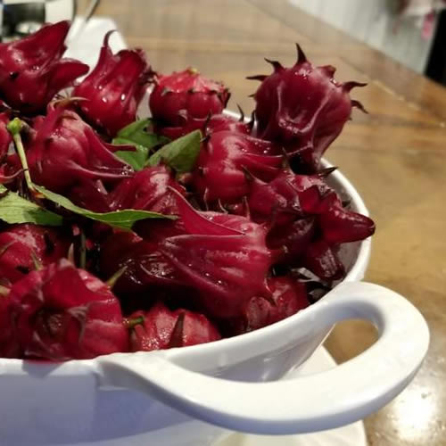 Place 5 Roselle Leaves in your tea cup